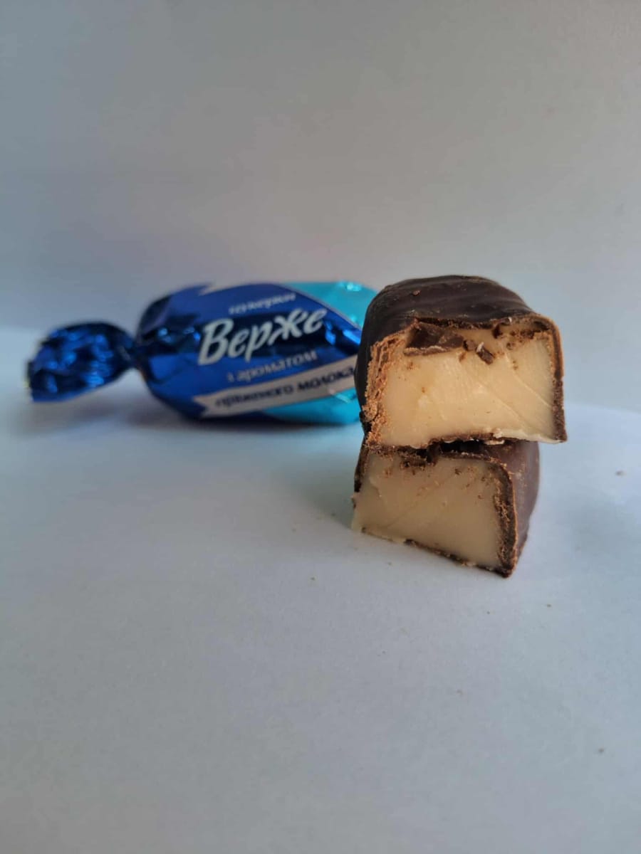 Обвит в елегантно, искрящо синьо фолио, този бонбон е създаден за любителите на млечната сладост .Първо ви посреща гладък, наситен тъмен шоколад. Той осигурява приятна, леко горчива “броня”, която перфектно балансира вкуса.